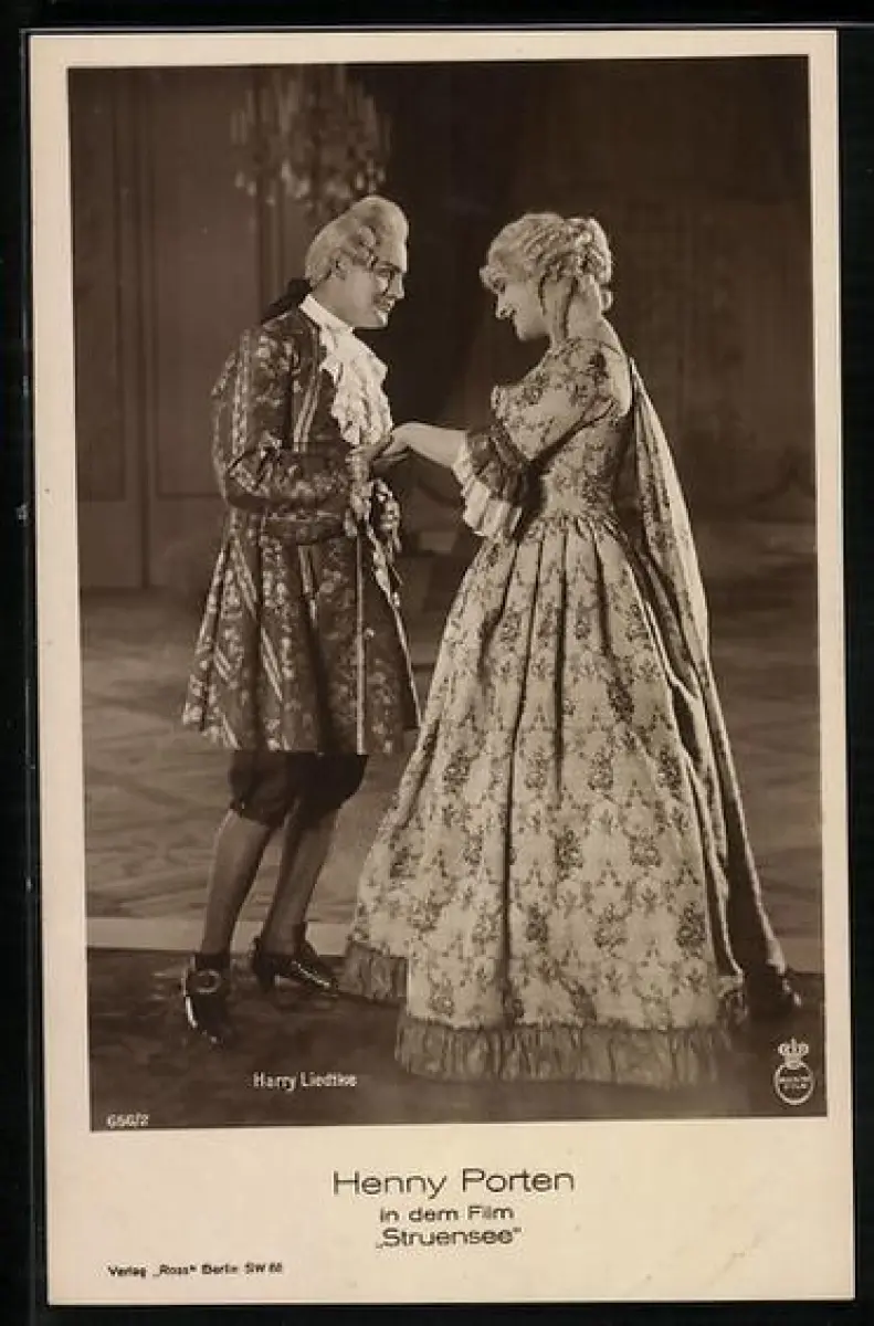 AK Schauspielerin Henny Porten mit Schauspieler Harry Liedtke in altertümlicher Kleidung in dem Film Struensee
