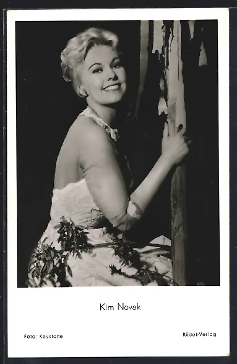 AK Schauspielerin Kim Novak im hübschen Kleid lächelt in die Kamera