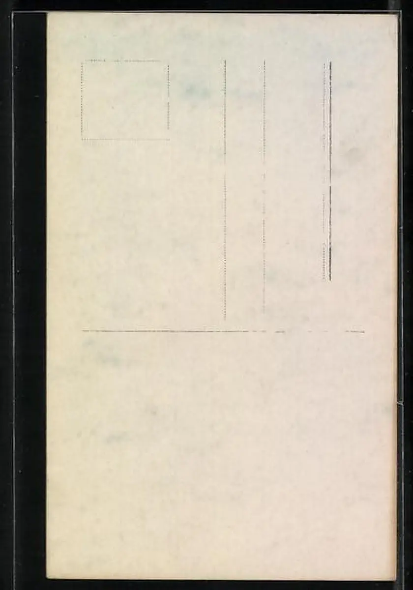 Personenbezogene Daten auf der Rückseite der Karte wurden durch blauen Textmarker unkenntlich gemacht. Die blauen Stellen sind auf die Vorderseite durchgeweicht und wirken sich negativ auf das Postkartenfoto aus