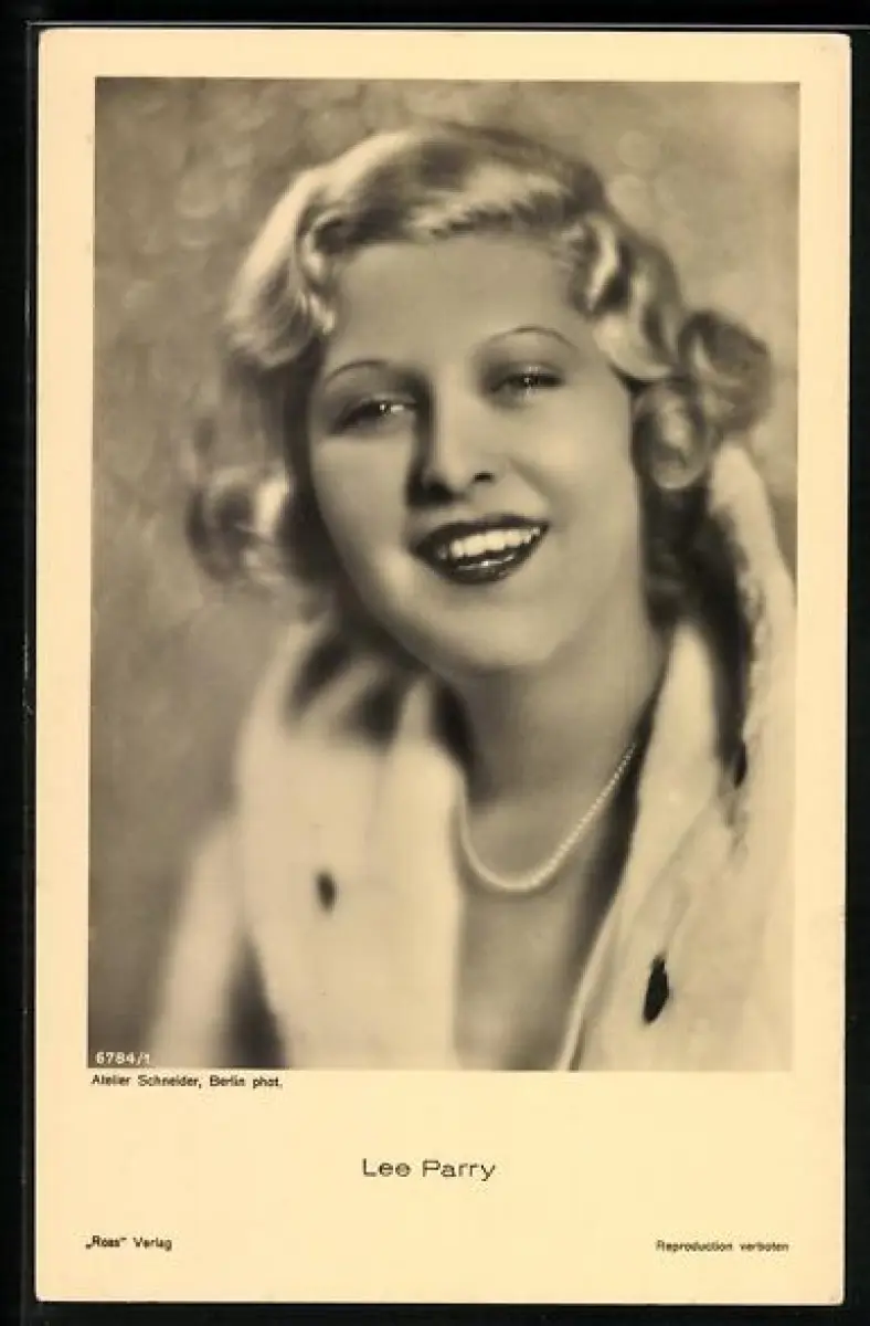 AK Schauspielerin Lee Parry mit toller Frisur in die Kamera lächelnd