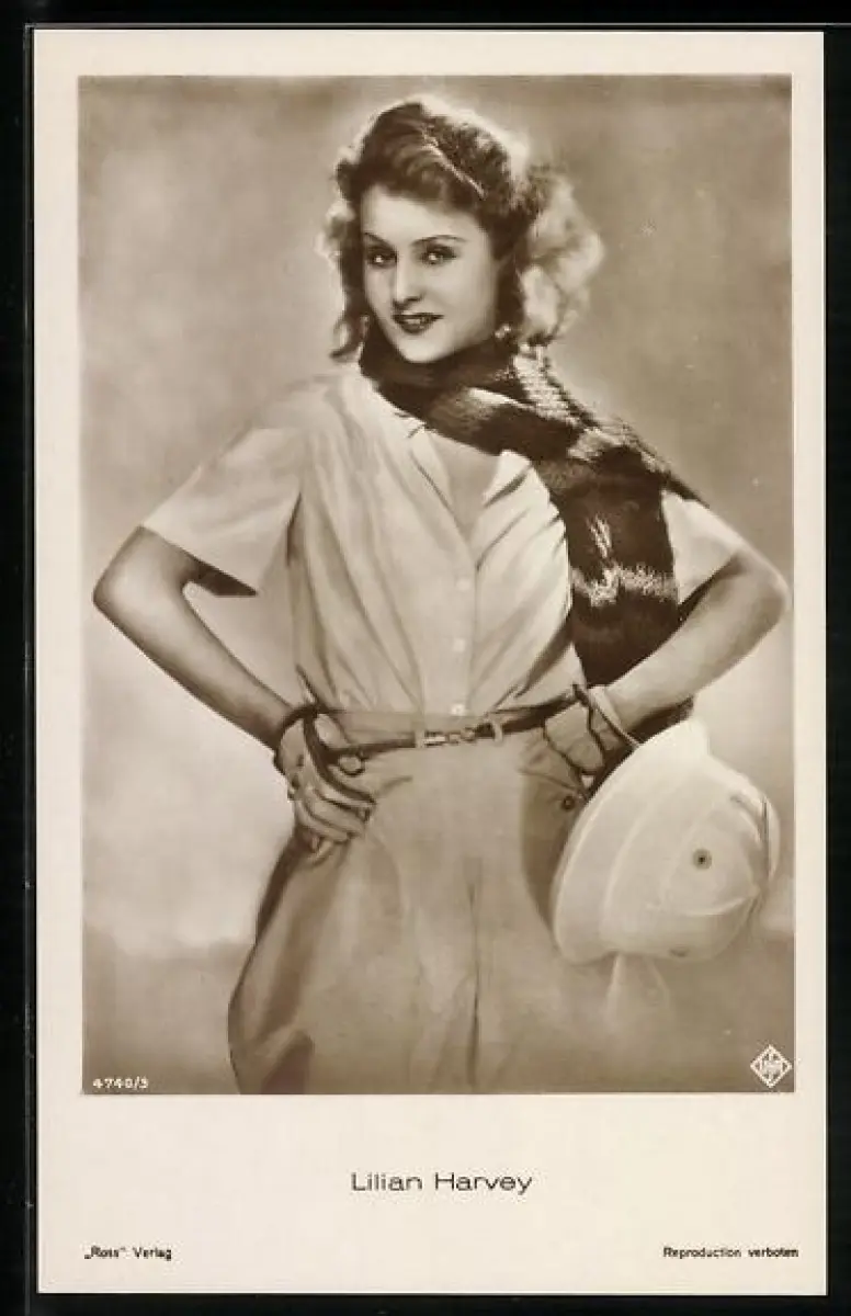 AK Schauspielerin Lilian Harvey in Tropenanzug mit Helm
