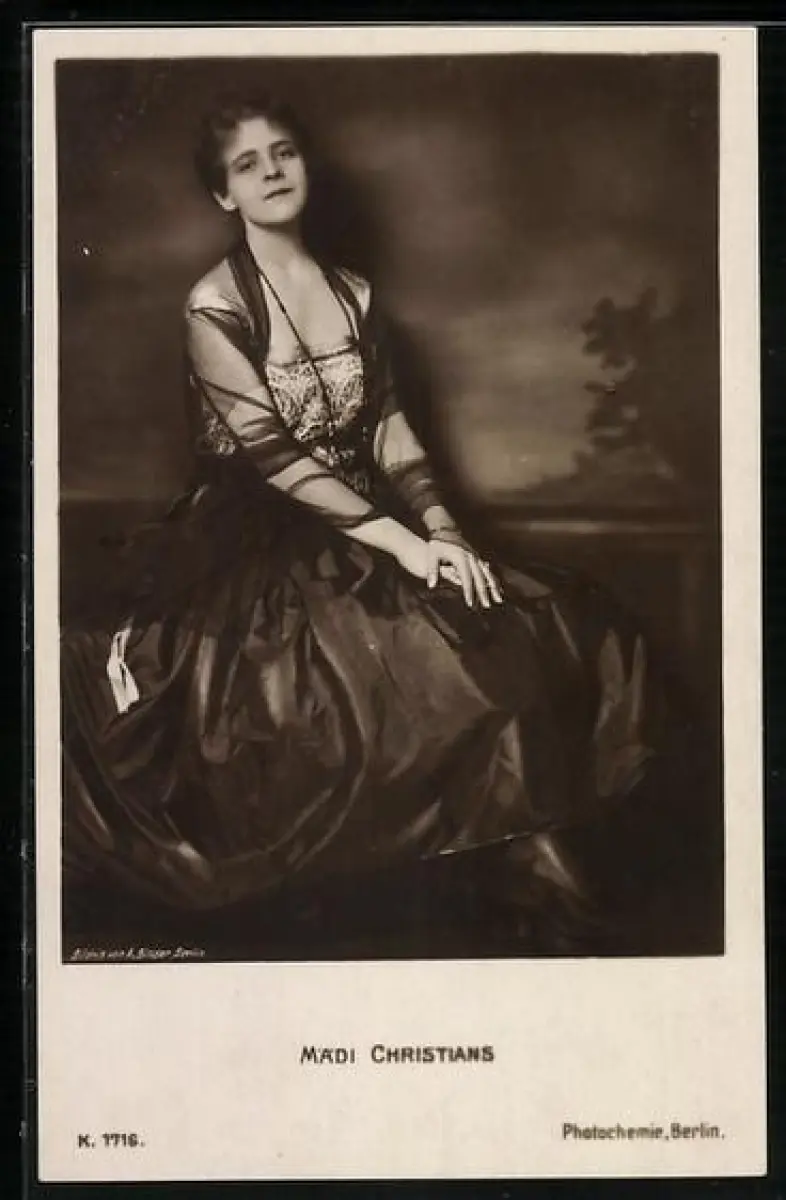 AK Schauspielerin Mädi Christians im Festkleid porträtiert
