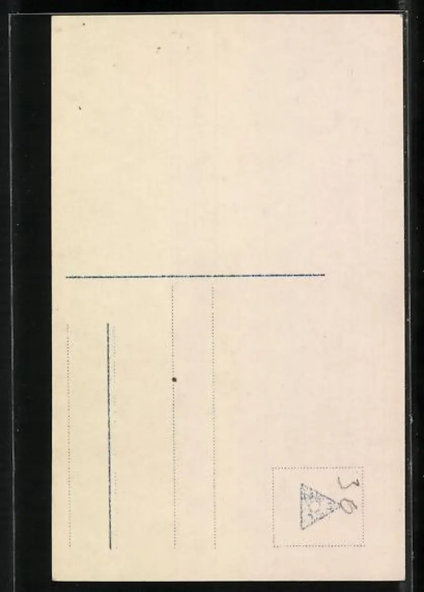Personenbezogene Daten auf der Rückseite der Karte wurden durch blauen Textmarker unkenntlich gemacht. Die blauen Stellen sind auf die Vorderseite durchgeweicht und wirken sich negativ auf das Postkartenfoto aus