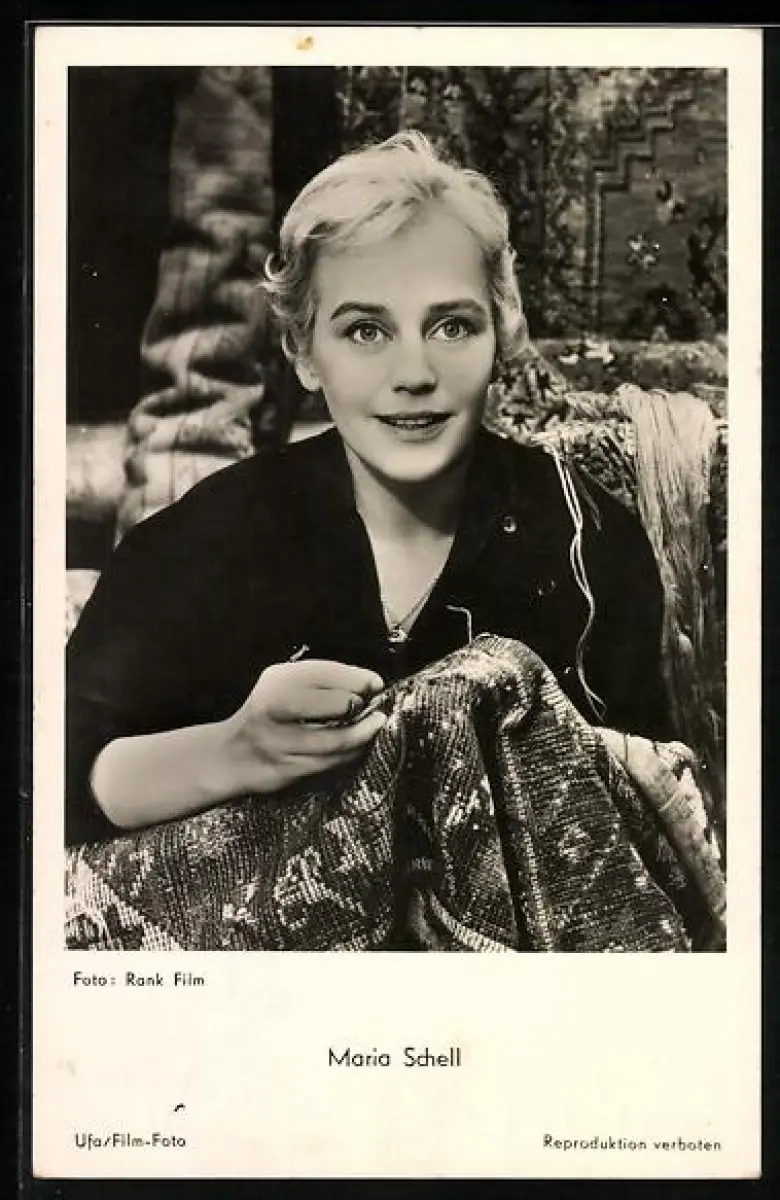 AK Schauspielerin Maria Schell beim Sticken