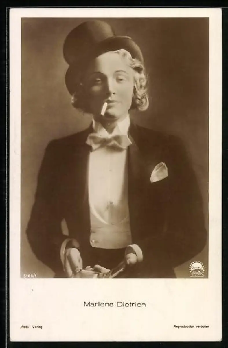 AK Schauspielerin Marlene Dietrich im Anzug mit Zigarette