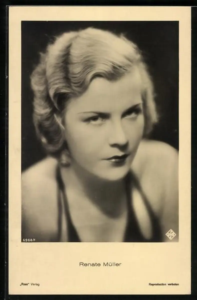 AK Schauspielerin Renate Müller mit Dauerwelle in schulterfreier Bekleidung
