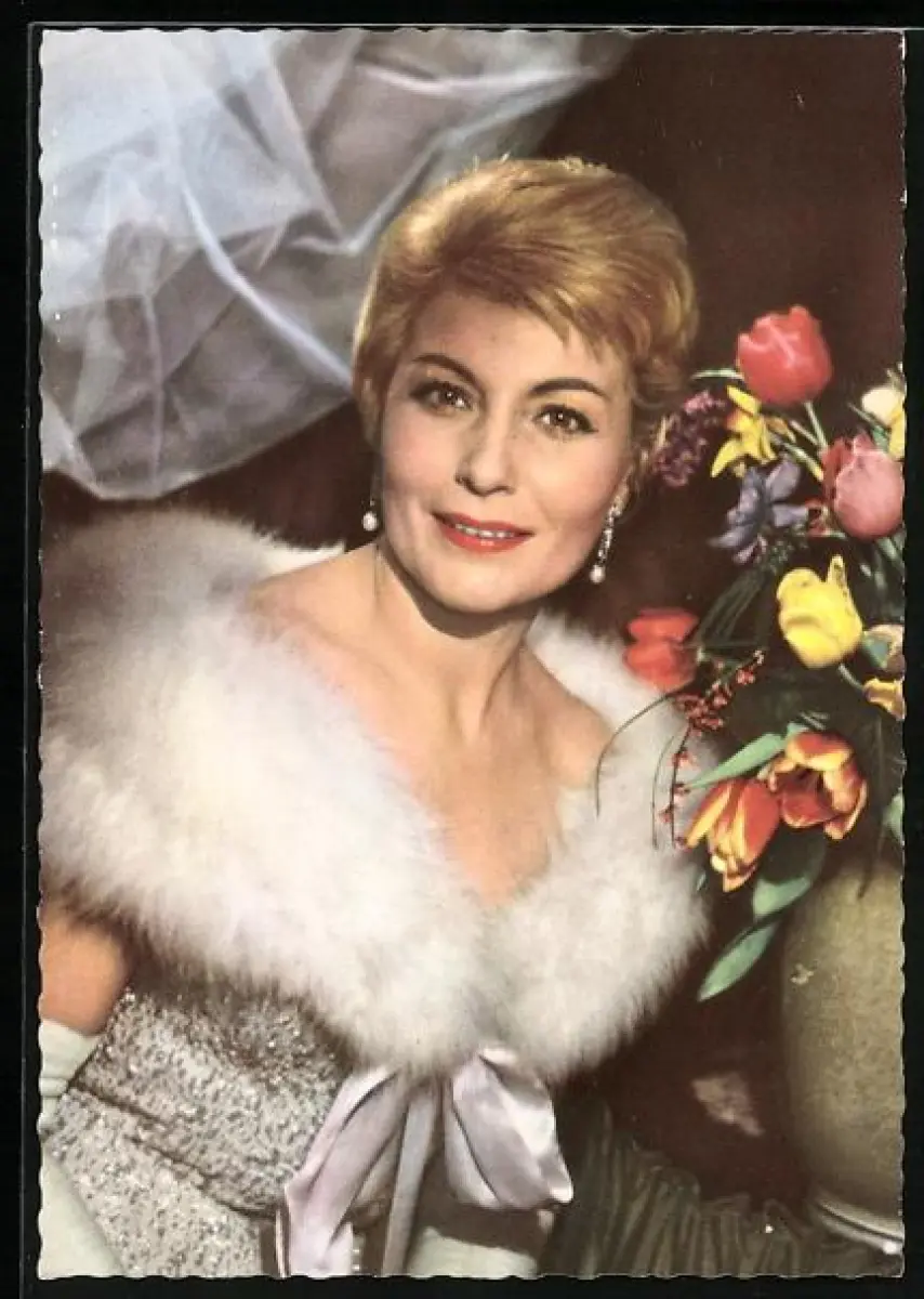 AK Schauspielerin Winnie Markus in pelzbesetztem Kleid