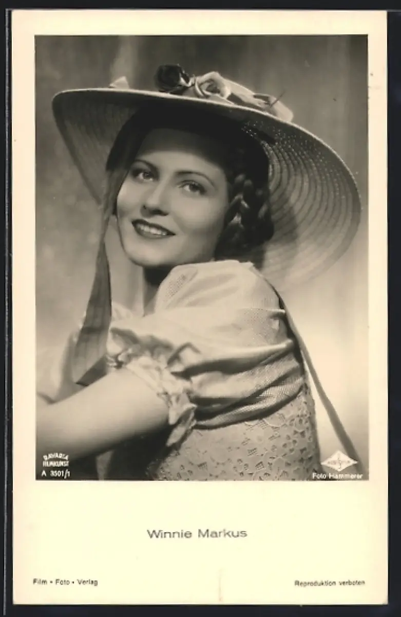 AK Schauspielerin Winnie Markus in sommerlicher Bluse und Hut
