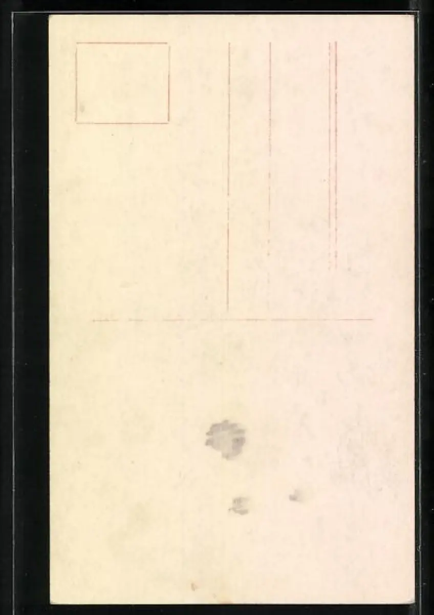 Personenbezogene Daten auf der Rückseite der Karte wurden durch blauen Textmarker unkenntlich gemacht. Die blauen Stellen sind auf die Vorderseite durchgeweicht und wirken sich negativ auf das Postkartenfoto aus
