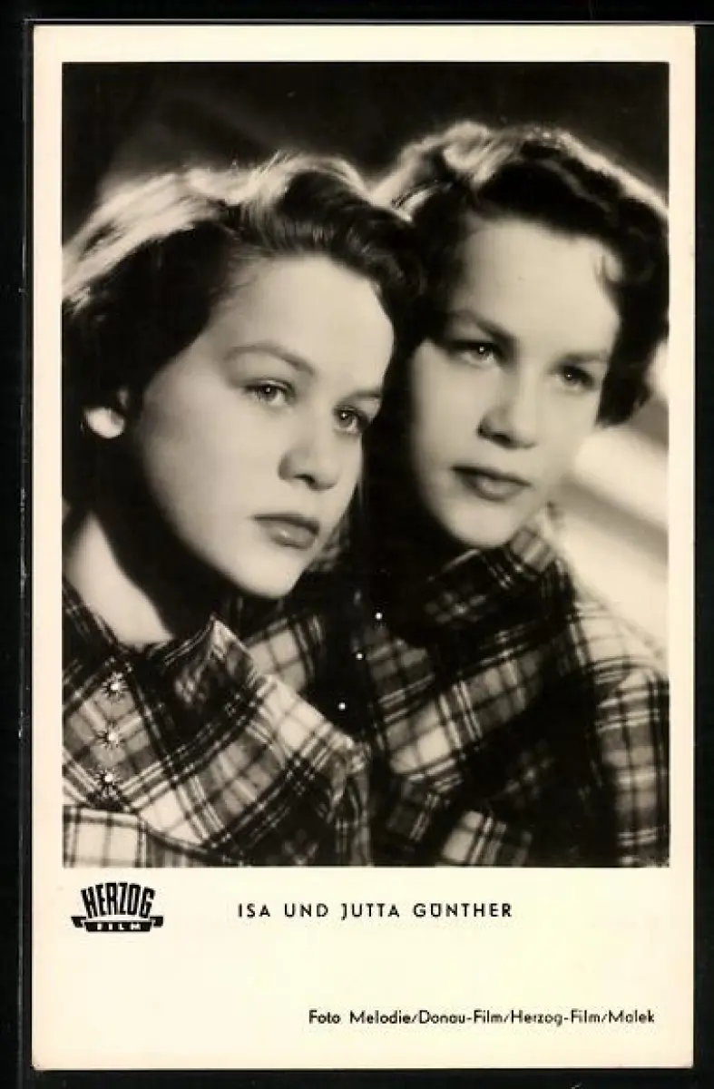 AK Schauspielerinnen Isa und Jutta Günther im kariertem Zwillingslook