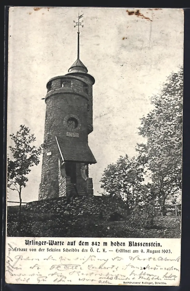 AK Scheibbs, Blassenstein, Urlinger Warte erbaut von der Sektion Scheibbs des Ö. T. K. 1903