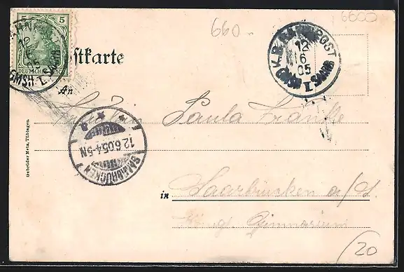 alte Ansichtskarte, gelaufen 1905, Eckknick unten re., guter Zustand