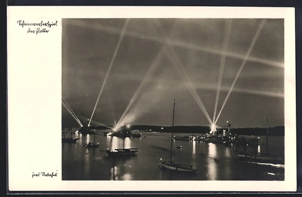 AK Scheinwerferspiel der Kriegsmarine-Flotte