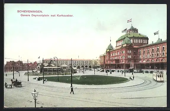 AK Scheveningen, Gevers Deynootplein met Kurhausbar, Strassenbahnen