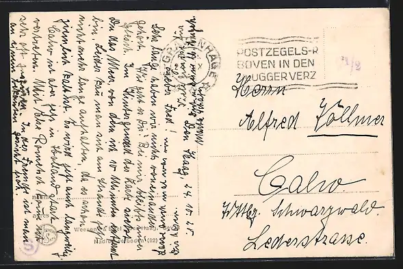 alte Ansichtskarte, gelaufen, Briefmarke entfernt, guter Zustand