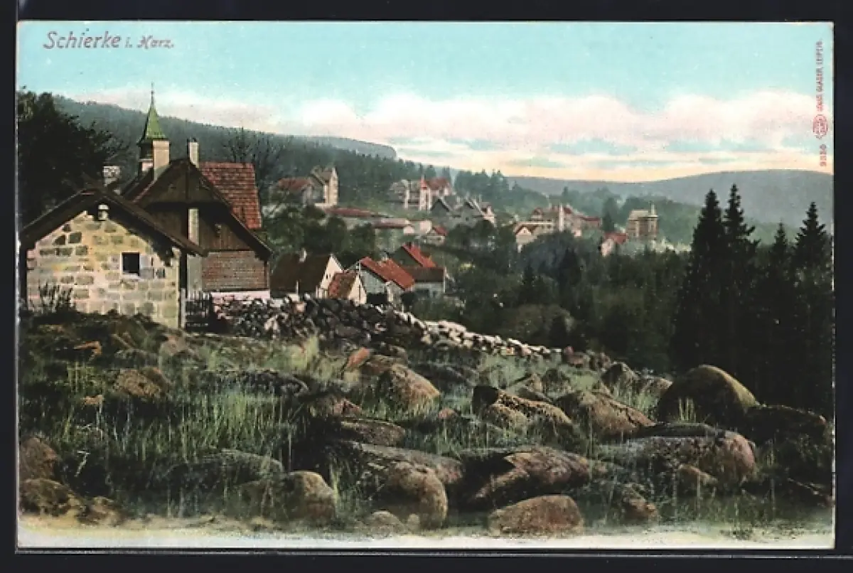 AK Schierke i. Harz, Ortsansicht mit Häusern und Blick auf den Ort
