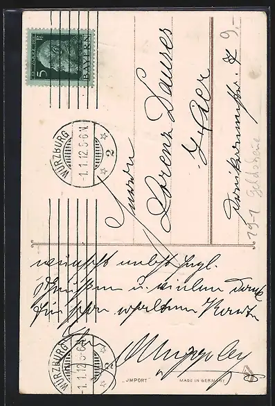 alte Ansichtskarte, gelaufen 1912, Stempelspur, guter Zustand