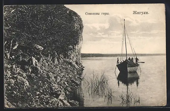 AK Schiguli, Sokolovy-Gory, Boot nahe felsiger Küste