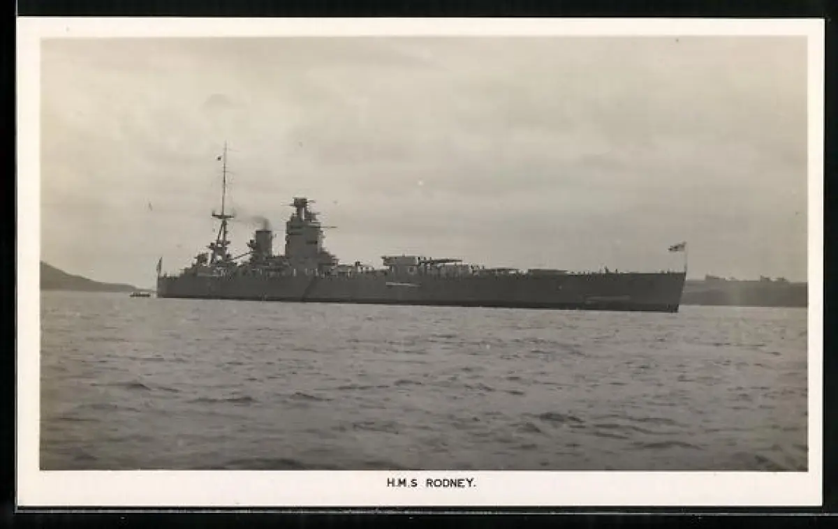 AK Schlachtschiff Rodney vor der Küste, Kriegsschiff