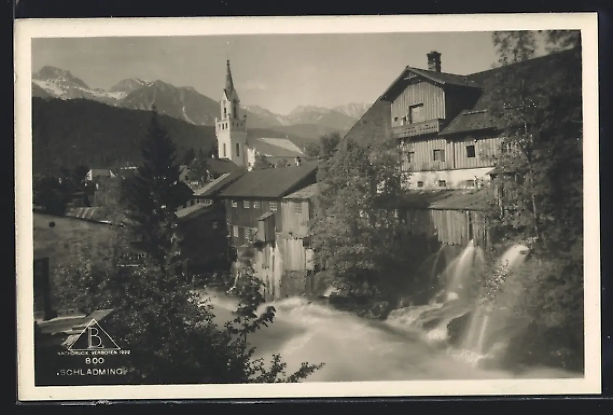 AK Schladming, Ortsansicht mit Kirche