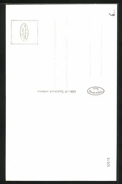 Personenbezogene Daten auf der Rückseite der Karte wurden durch blauen Textmarker unkenntlich gemacht. Die blauen Stellen sind auf die Vorderseite durchgeweicht und wirken sich negativ auf das Postkartenfoto aus