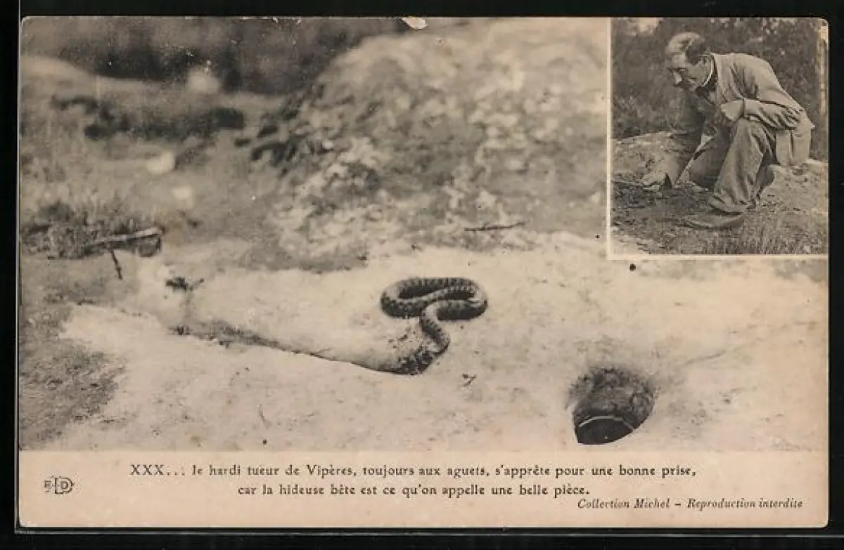 AK Schlange auf dem Boden, Mann mit einem Stöckchen