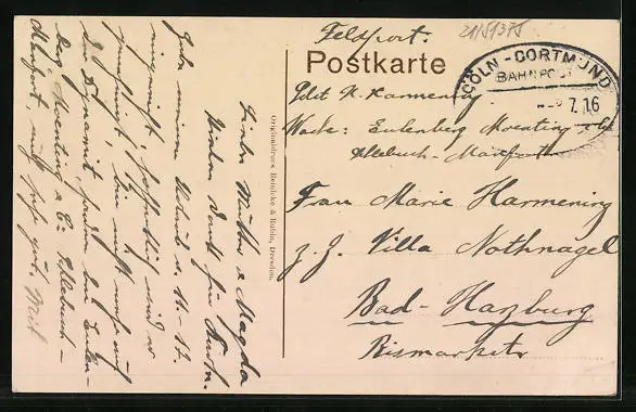 alte Ansichtskarte, gelaufen 1916, Eckknick unten li., guter Zustand