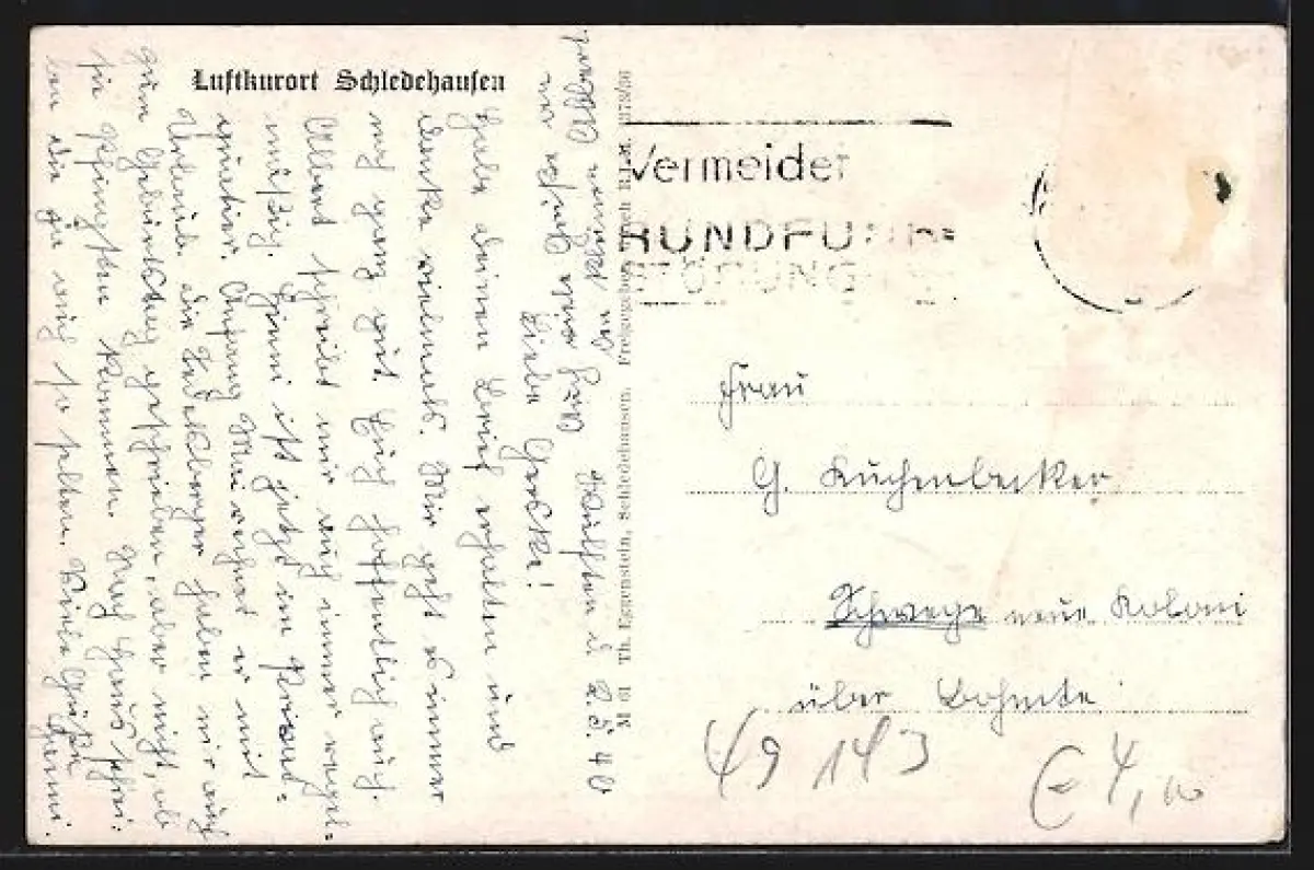 alte Ansichtskarte, gelaufen, Briefmarke entfernt, rückseitig Oberflächenschaden, guter Zustand