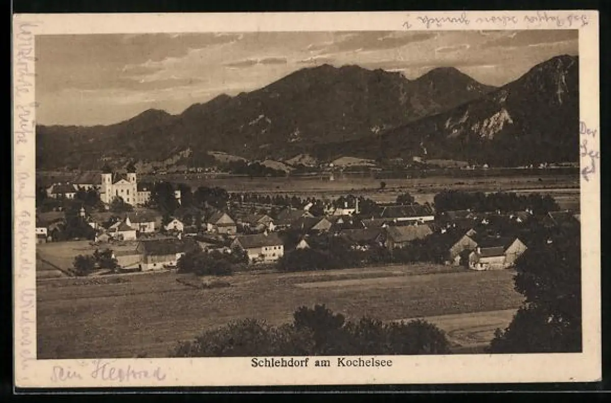 AK Schlehdorf am Kochelsee, Teilansicht mit Kirche