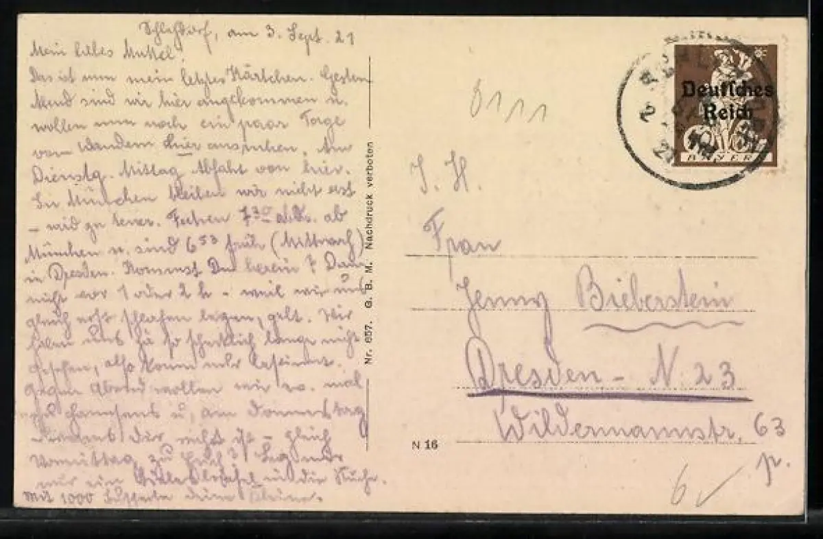 alte Ansichtskarte, gelaufen 1921, Eckknicke li. unten u. re. oben, guter Zustand