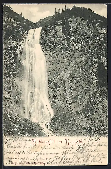 Personenbezogene Daten auf der Rückseite der Karte wurden durch blauen Textmarker unkenntlich gemacht. Die blauen Stellen sind auf die Vorderseite durchgeweicht und wirken sich negativ auf das Postkartenfoto aus
