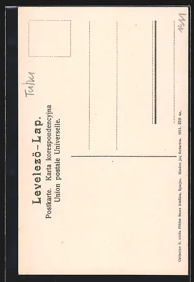 Personenbezogene Daten auf der Rückseite der Karte wurden durch blauen Textmarker unkenntlich gemacht. Die blauen Stellen sind auf die Vorderseite durchgeweicht und wirken sich negativ auf das Postkartenfoto aus