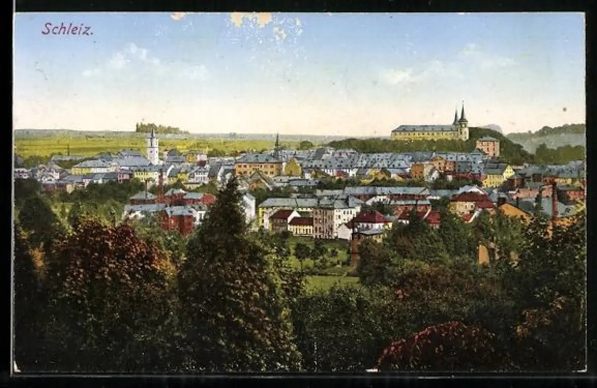 AK Schleiz, Stadtansicht mit Kirche und Schloss