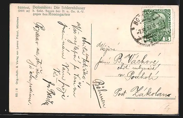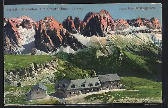 AK Schlernhäuser, Ansicht gegen den Rosengarten