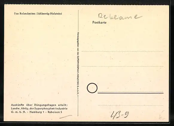 Personenbezogene Daten auf der Rückseite der Karte wurden durch blauen Textmarker unkenntlich gemacht. Die blauen Stellen sind auf die Vorderseite durchgeweicht und wirken sich negativ auf das Postkartenfoto aus