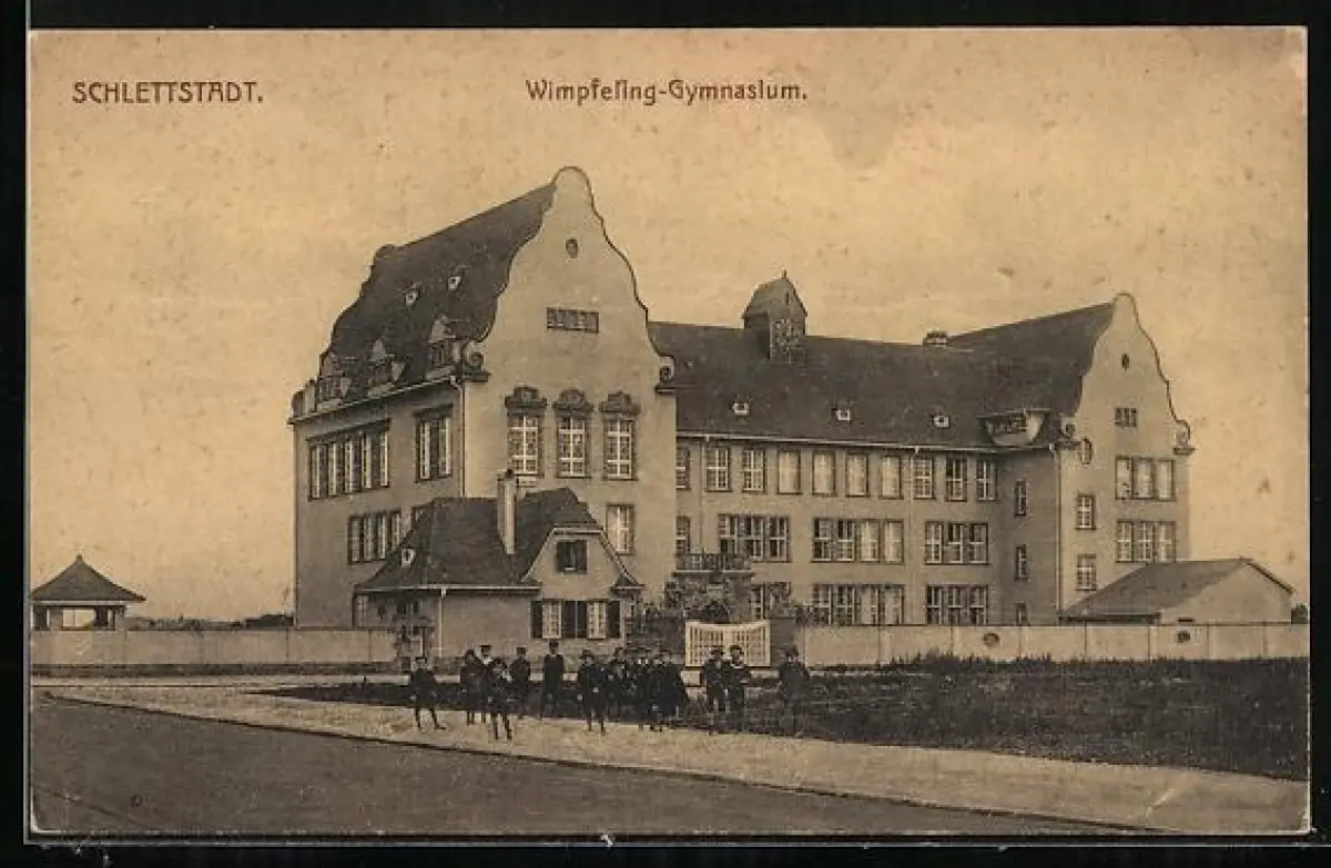 AK Schlettstadt, Strassenpartie am Wimpfeling-Gymnasium