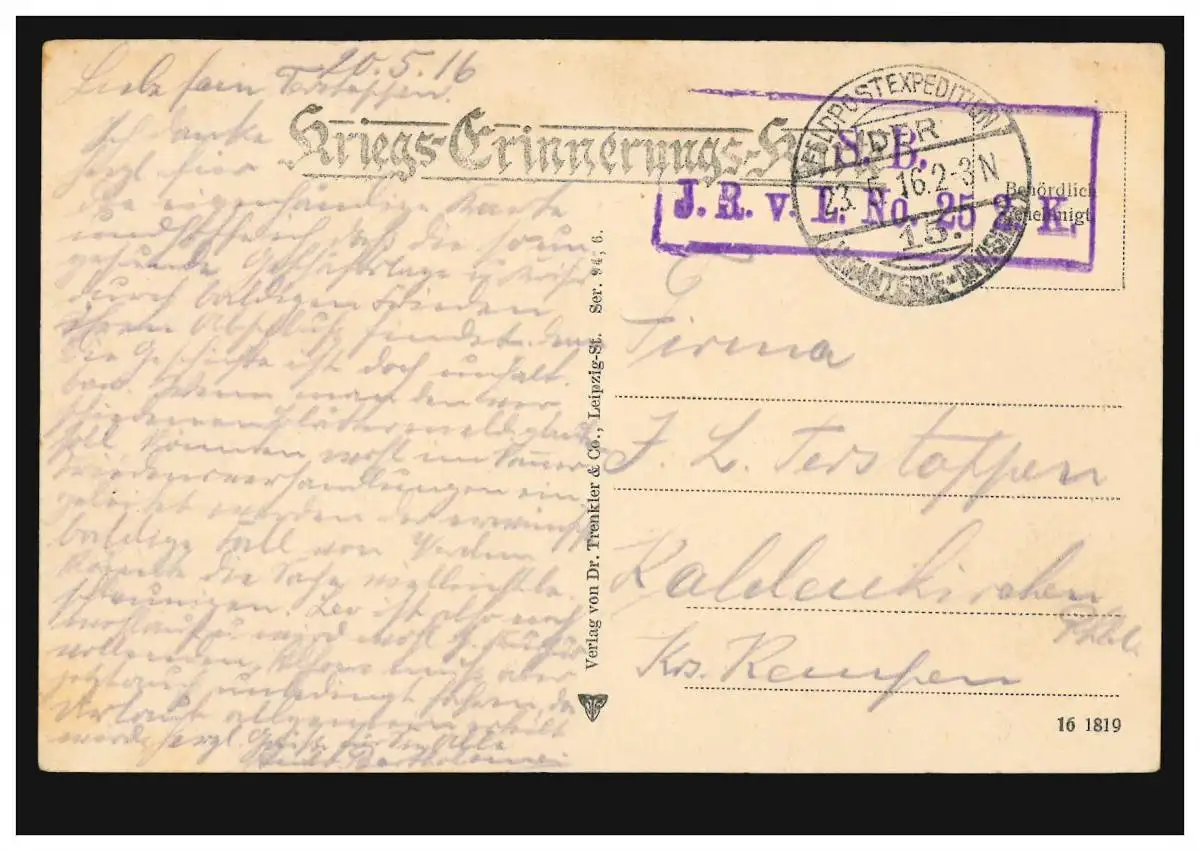 Feldpostkarte SB J.R. v. L. No. 25 / 2. Kompanie