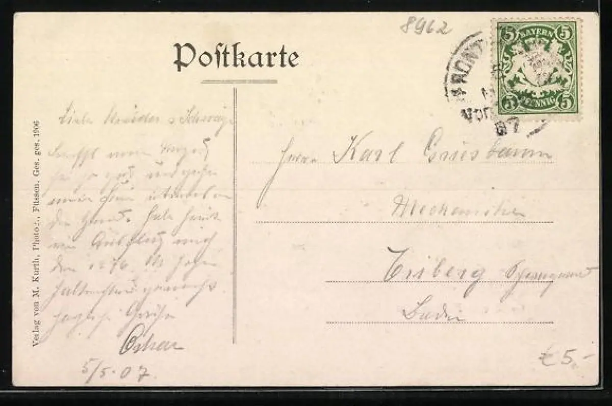 alte Ansichtskarte, gelaufen 1907, Stempelspur, guter Zustand