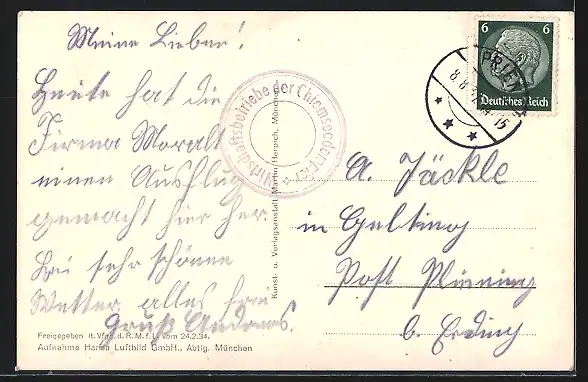 AK Schloss Herrenchiemsee aus der Vogelschau