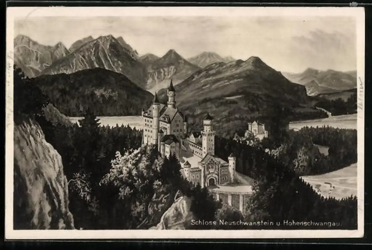 AK Schloss Neuschwanstein, Ansicht mit Hohenschwangau