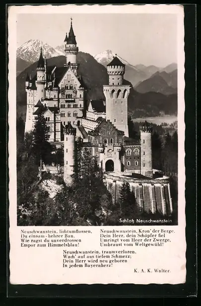 AK Schloss Neuschwanstein, Gesamtansicht, Gedicht