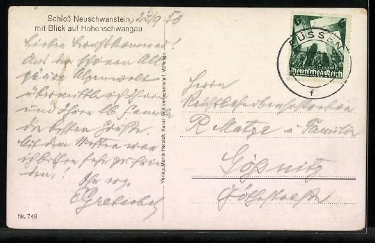 AK Schloss Neuschwanstein mit Blick auf Hohenschwangau