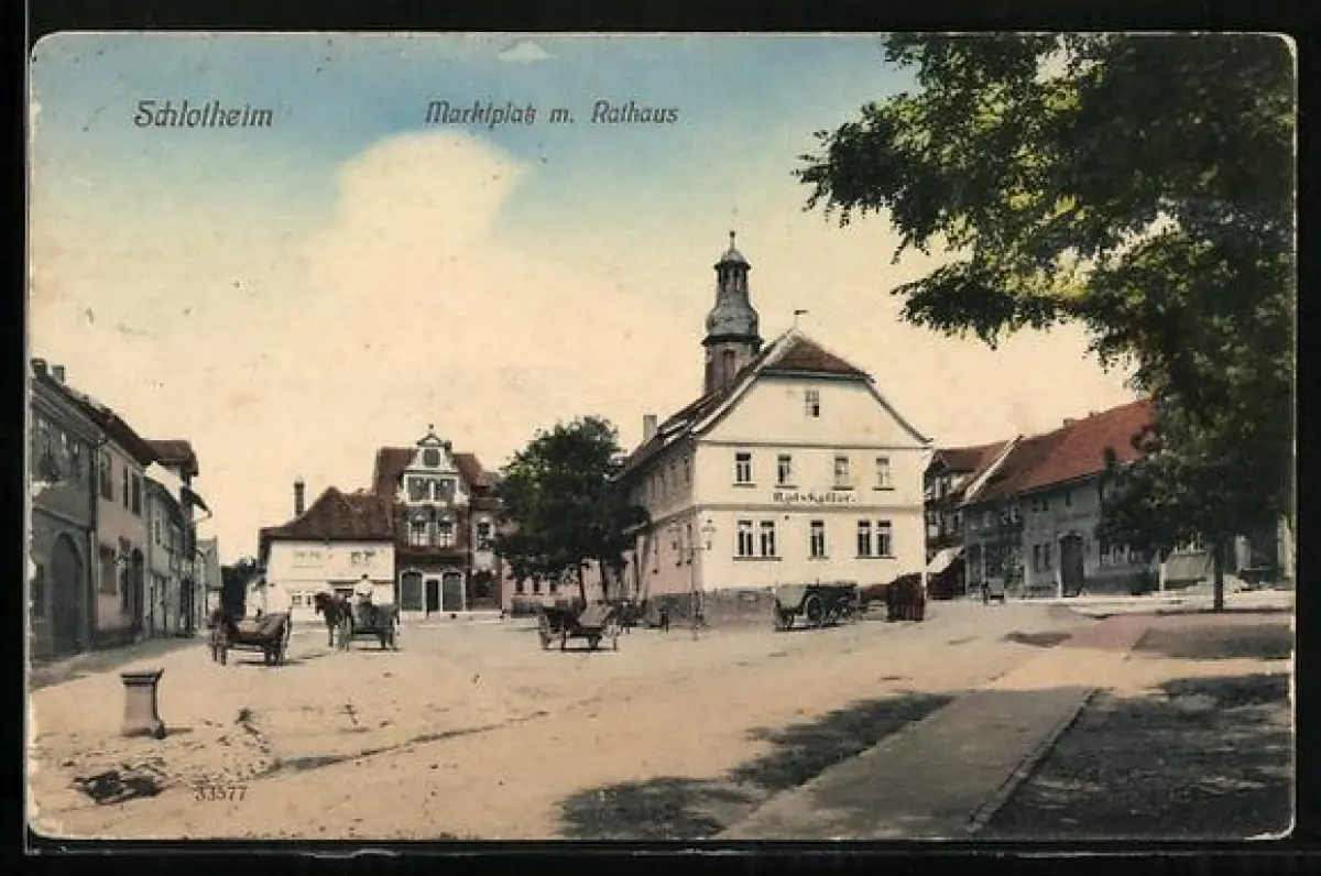 AK Schlotheim, Marktplatz mit Rathaus und Restaurant Ratskeller