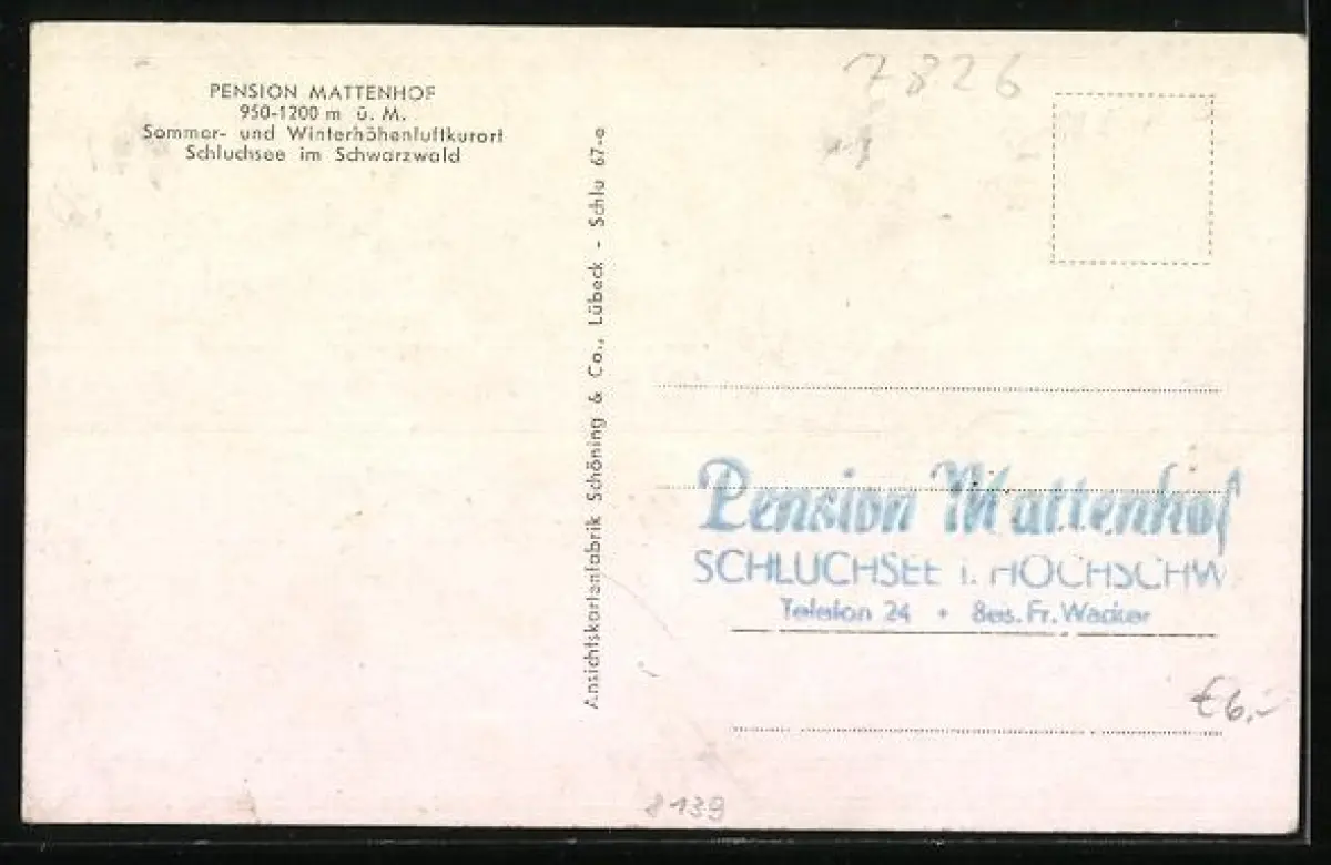 AK Schluchsee /Schwarzwald, Pension Mattenhof, Bes. Fr. Wacker