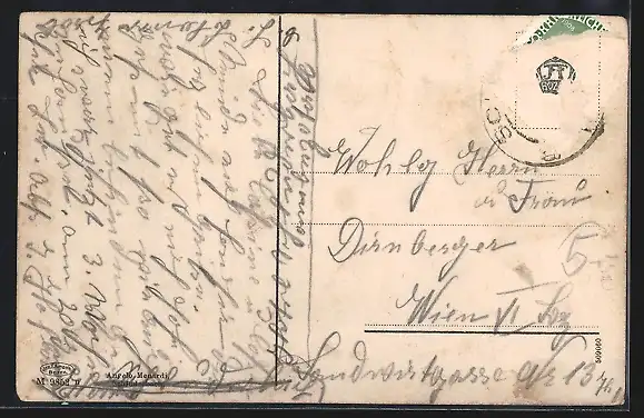 alte Ansichtskarte, gelaufen, Briefmarke entfernt, rückseitig Oberflächenschaden, guter Zustand