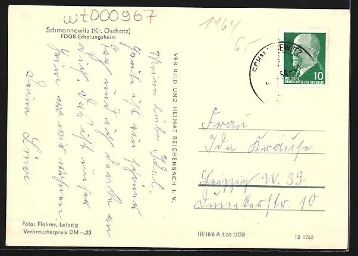 AK Schmannewitz /Oschatz, FDGB-Erholungsheim, Aussenansicht mit Gästen