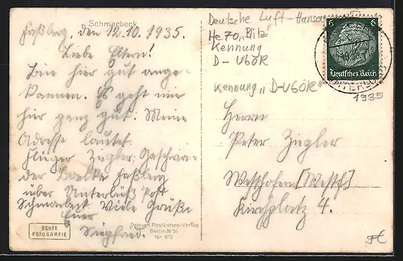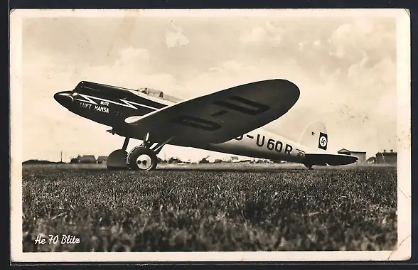 AK Schmarbeck, Flugzeug He 70 Blitz mit der Kennung D-U60R
