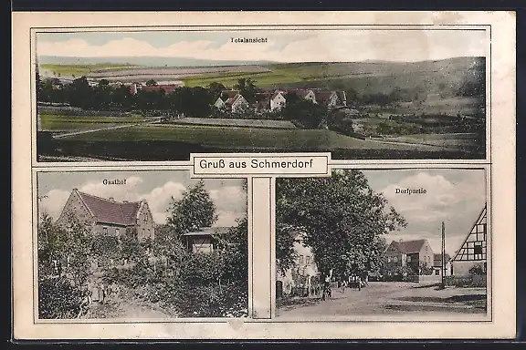 AK Schmerdorf, Gasthof, Dorfpartie, Totalansicht