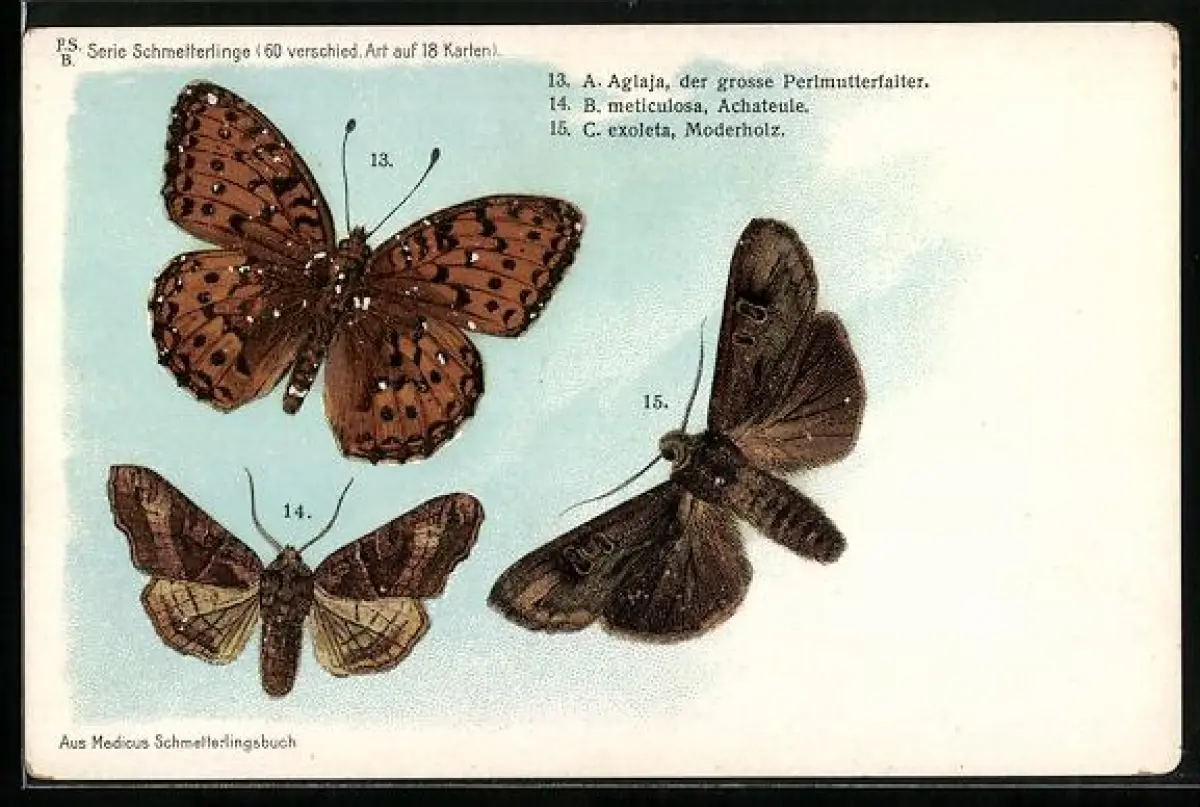 AK Schmetterlinge, Grosser Perlmutterfalter, A. Agiaja, Achateule, B. meticulosa, Moderholz, C. exoleta