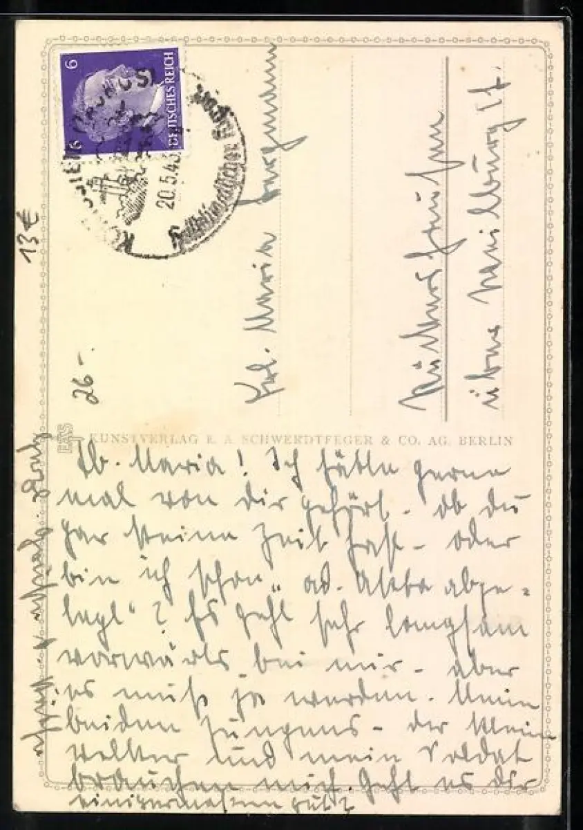 alte Ansichtskarte, gelaufen 1943, Eckknick unten re., guter Zustand
